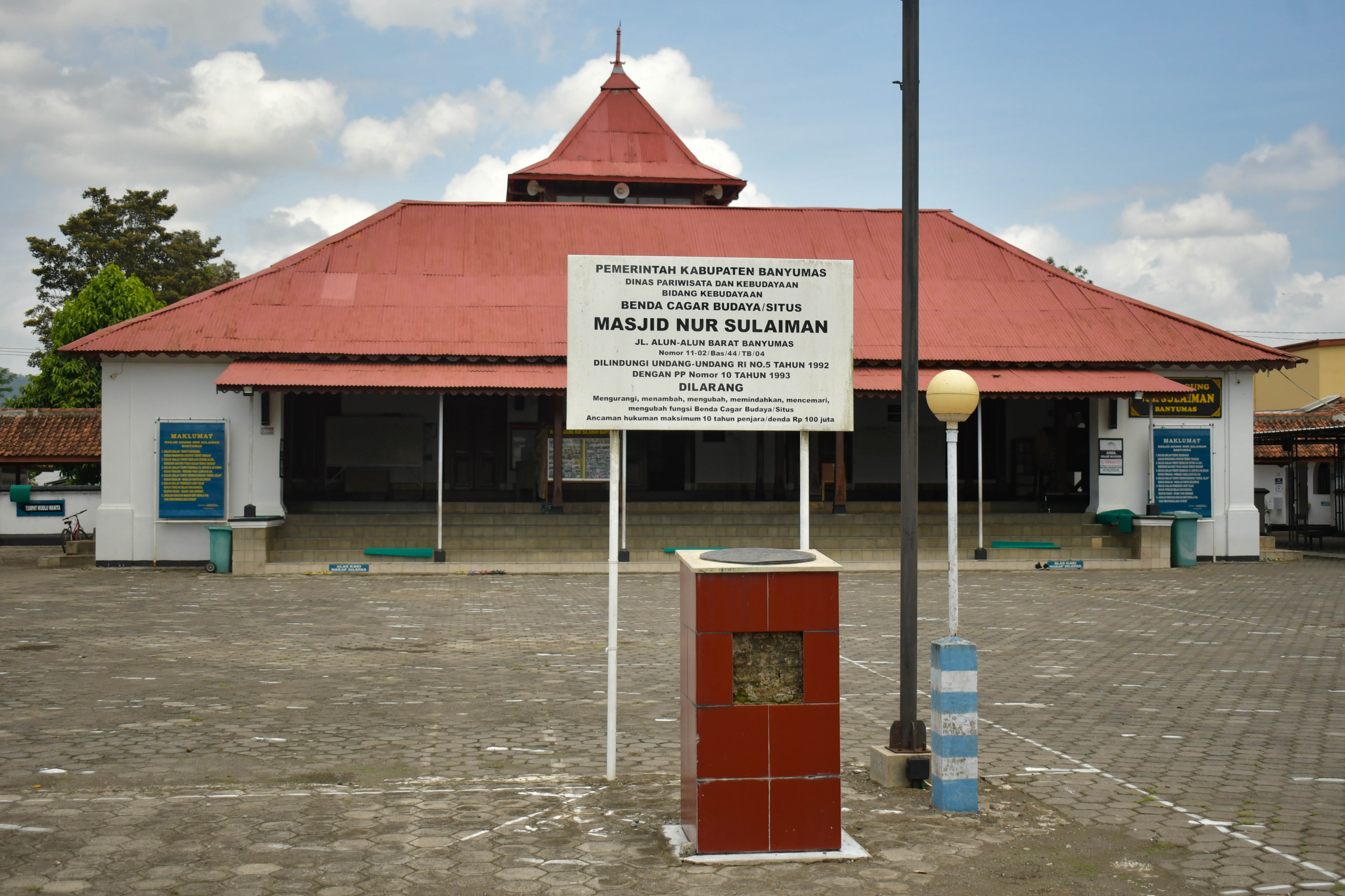 Lokasinya sangat strategis karena pada jaman dahulu untuk membangun suatu tempat selalu menggunakan perhitungan hari baik dan arah bangunan yang baik. Sebagai contoh: bangunan Pendopo Kabupaten dibuat menghadap kearah selatan dengan falsafah agar berpandangan luas ke Pantai Selatan dan didukung halaman alun-alun yang luas, Masjid yang berada disebelah kanan atau barat pendopo dengan maksud sebagai tempat yang baik untuk mengingat sang cholik atau pencipta, sedangkan sebelah kiri atau timur pendopo dibangun pengadilan atau penjara untuk menimbang antara kebaikan dengan kejahatan. Masjid Nur Sulaiman ini tepatnya berada disebelah barat alun-alun Banyumas atau arah timur dari kota Purwokerto yang berjarak sekitar 15 km.